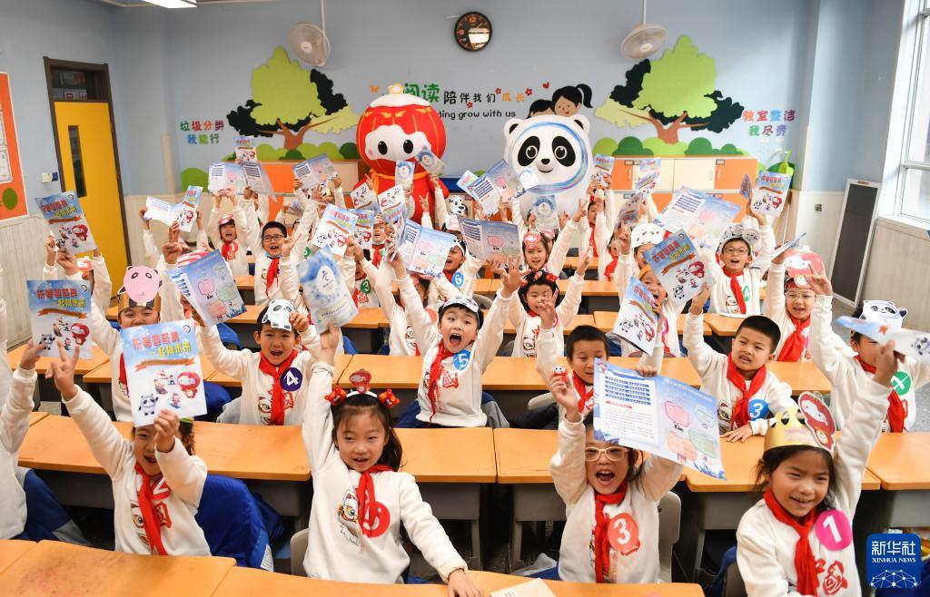 1月4日,在太原市新建路小学,小学生们展示自己闯关答题的成绩单。