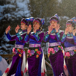 1月5日,演员在中国九寨沟第十七届国际冰瀑旅游节上表演民族歌舞。