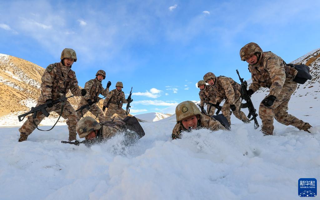 1月4日,驻守在西藏阿里高原的阿里军分区某边防团官兵在雪地进行战术比武。