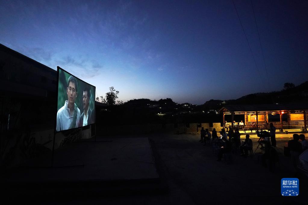 2021年8月10日,山西省柳林县三交镇高家焉村村民在观看露天电影。40多年来,三交镇电影放映队累计为村民们播放了上万部影片。
