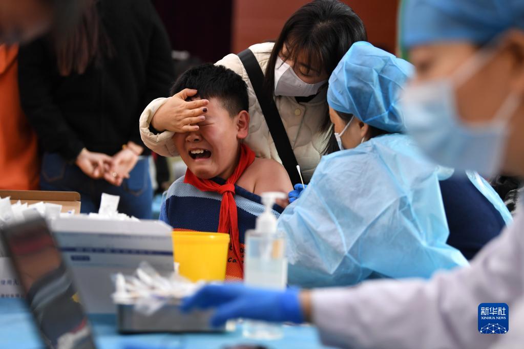 2021年11月12日,医务人员在合肥市翡翠学校为小朋友接种新冠疫苗。