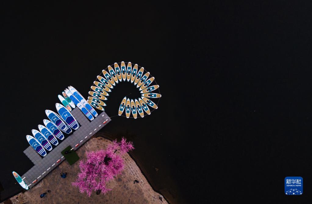 这是2021年3月8日拍摄的普者黑国家湿地公园青龙山码头。进入3月,地处云南省文山壮族苗族自治州丘北县的普者黑国家湿地公园内层峦叠嶂,在光影交汇中尽显秀美景色。