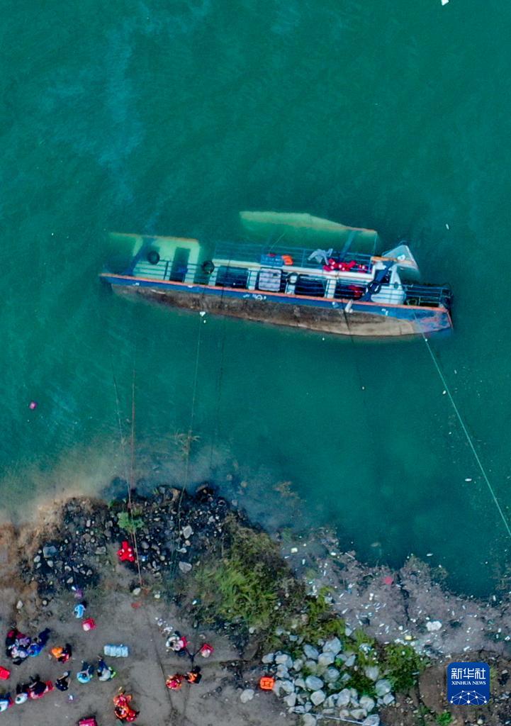2021年9月19日,救援人员在贵州省六盘水市六枝特区牂牁镇客船侧翻事故现场搜救。