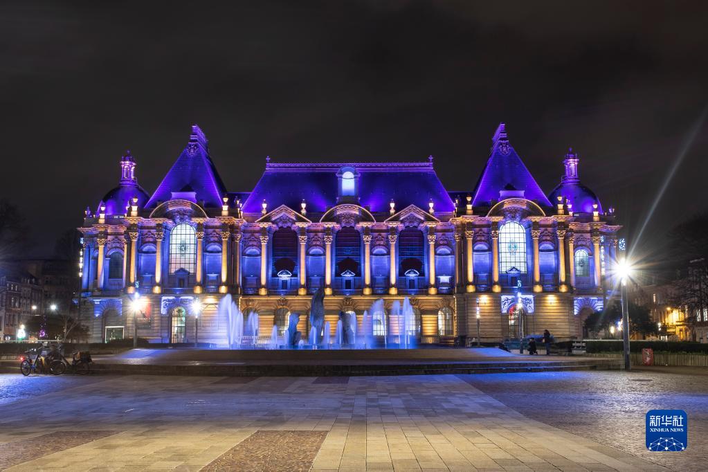 这是1月5日在法国北部城市里尔拍摄的被蓝色灯光点亮的里尔美术馆。