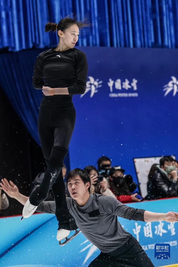 当日,中国花样滑冰国家集训队在北京进行北京冬奥会前最后一次公开训练,三对双人滑组合隋文静/韩聪、彭程/金杨、王瑀晨/黄一航在首钢园冰上训练中心进行了上冰训练。