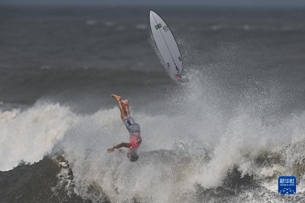 当日,东京奥运会冲浪项目男子短板项目在日本千叶县钓崎海岸冲浪会场举行。