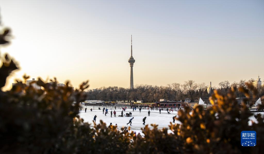 2021年1月30日,市民在北京玉渊潭公园一处冰场内滑冰。