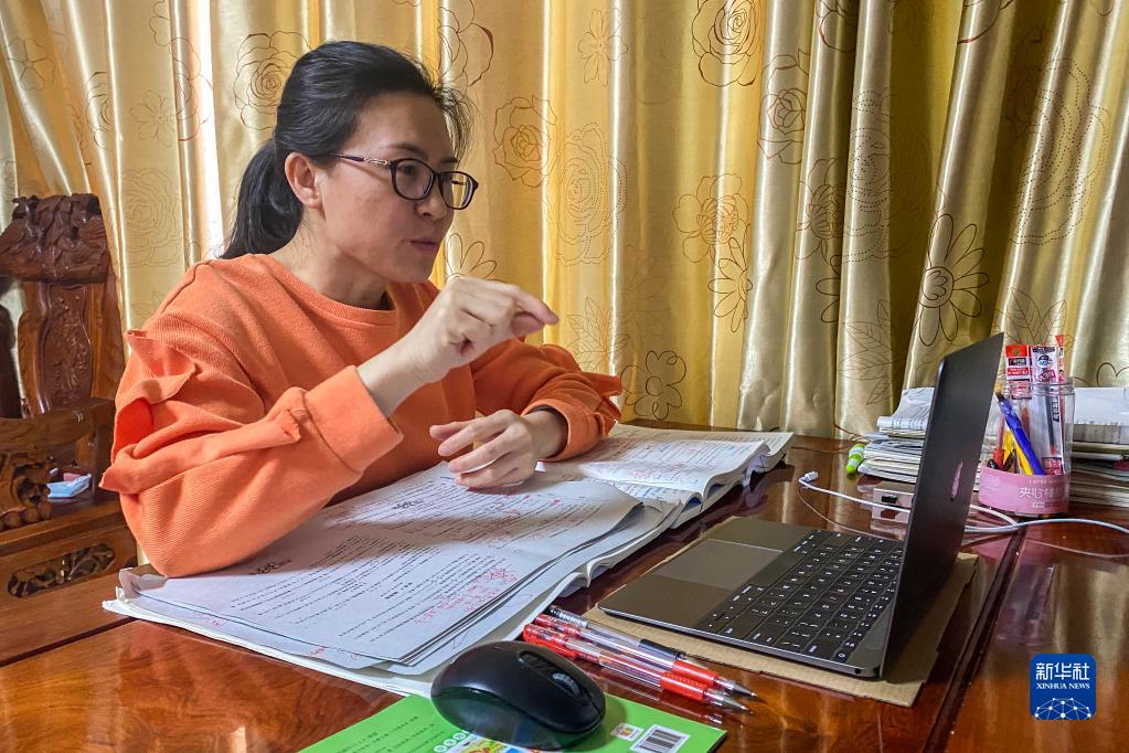 1月5日晚,东兴中学一名家住疫情封控区的老师在家为高三学生上网课(受访者供图)。