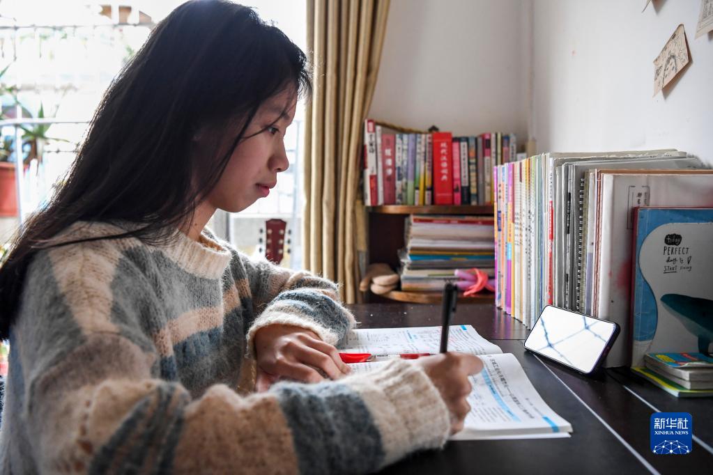 1月6日,东兴中学高三学生彭国梅在家上网课。