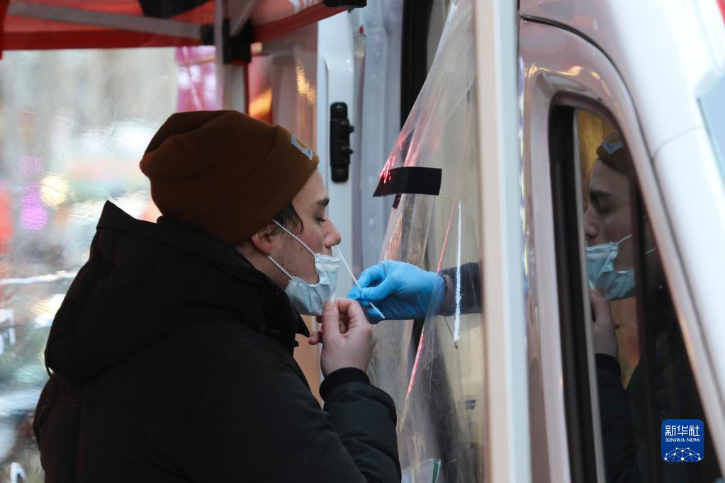 这是1月4日,一名男子在美国纽约街头接受新冠检测。