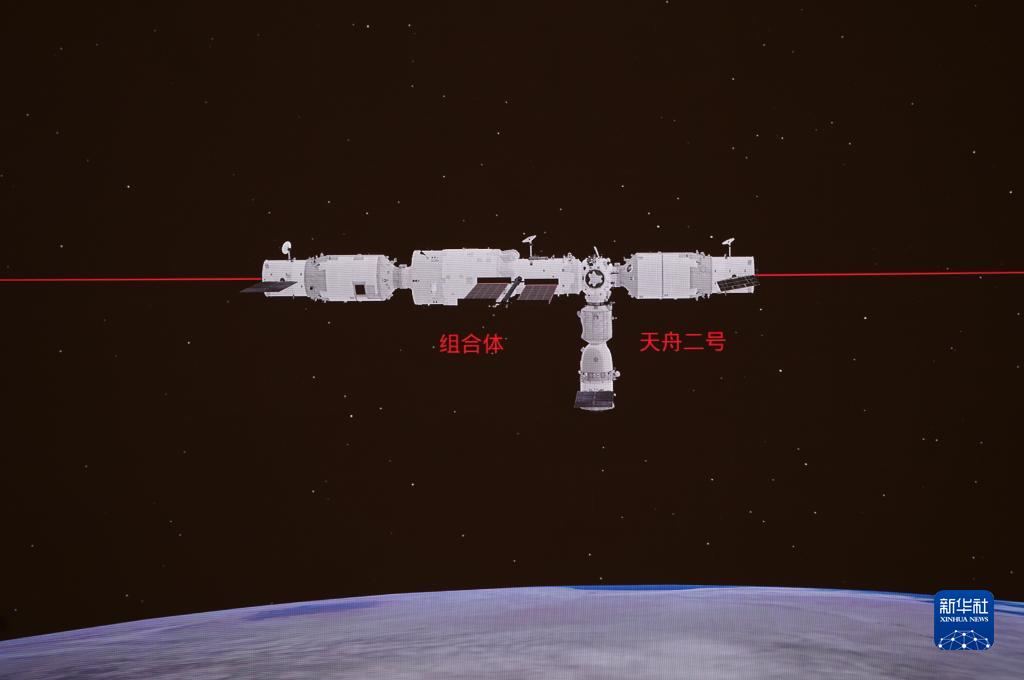 1月8日在北京航天飞行控制中心拍摄的神舟十三号航天员乘组进行手控遥操作天舟二号货运飞船与空间站组合体交会对接试验,天舟二号货运飞船与空间站组合体精准完成前向交会对接。