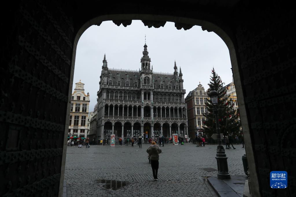 1月7日,人们在比利时布鲁塞尔大广场参观游览。