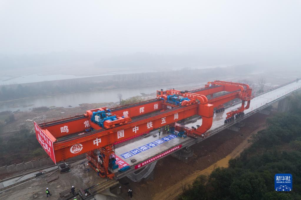 当日,常(德)益(阳)长(沙)铁路全线箱梁架设完成,常益长铁路建设取得阶段性进展,为顺利开通运营奠定了基础。