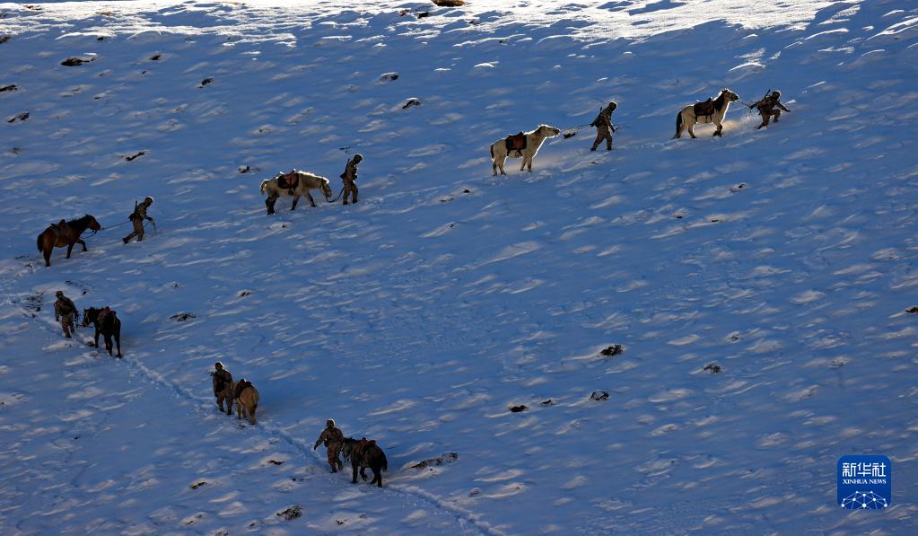 1月1日,驻守在西藏阿里高原的阿里军分区某边防团官兵迎着新年第一缕阳光向点位前行。