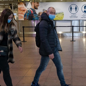 1月8日,在比利时布鲁塞尔国际机场的新冠检测中心,人们等待做检测。