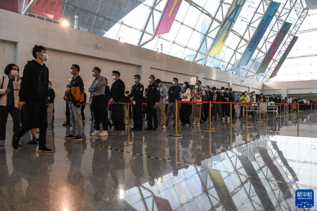 群众在深圳市民中心排队进行核酸检测(1月7日摄)。新华社记者 梁旭 摄