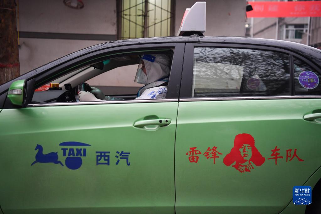 1月5日,西安市“的哥”王锋利在西安市新城区一处社区等待核酸检测样本。