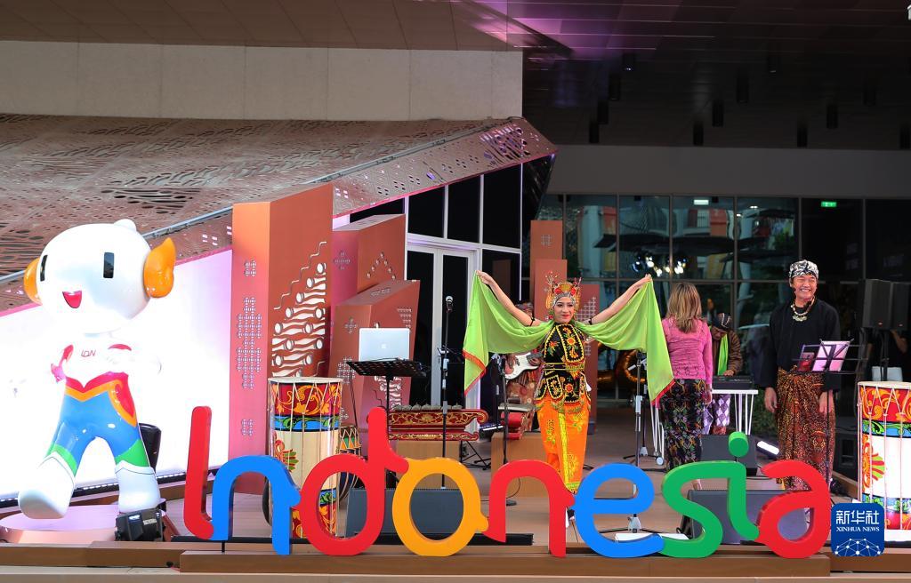 1月9日,演员在阿拉伯联合酋长国迪拜世博会的印度尼西亚馆外表演。