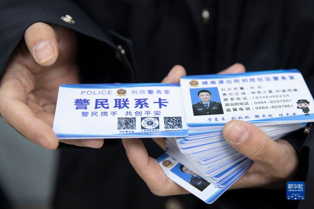 1月9日,在七台河市桃山区,刘欣手里拿着准备发放给居民的警民联系卡。