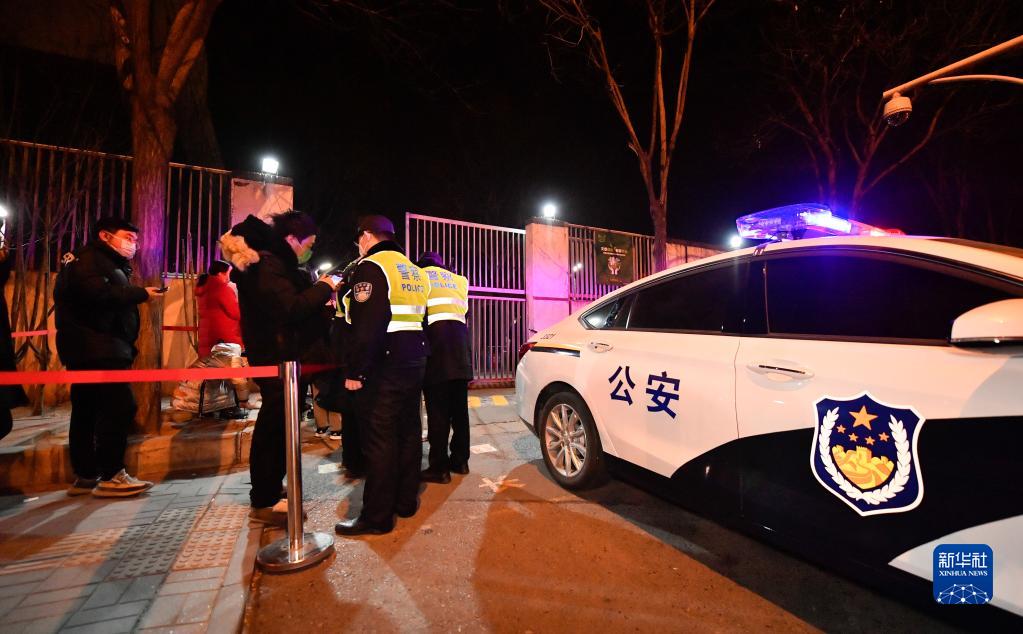 1月10日凌晨,在天津市南开区鼓楼街道,天津市公安局南开分局鼓楼派出所执勤民警在协助市民进行核酸采样登记。