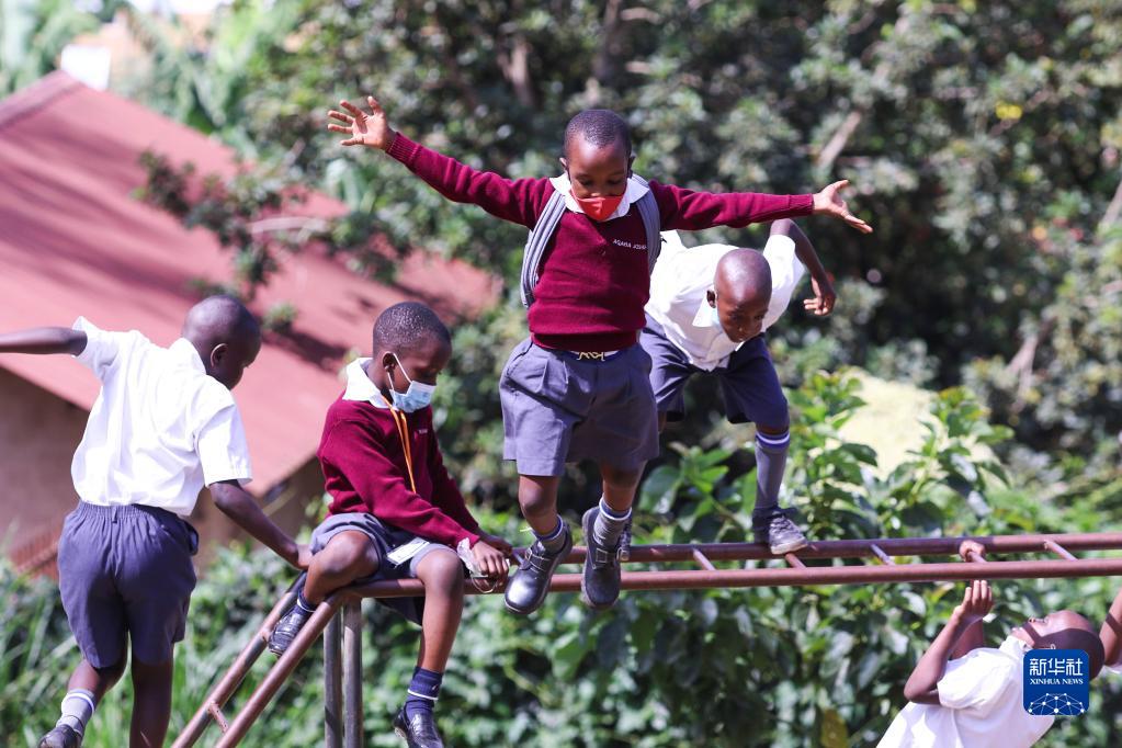 1月10日,学生在乌干达坎帕拉的一所学校内玩耍。