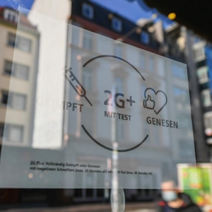 这是1月10日拍摄的德国法兰克福一家餐厅外张贴的“2G+”防疫规定。
