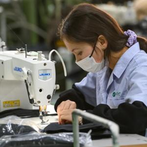 1月11日,在新疆墨玉县产城融合园,新疆耶莉娅服饰有限公司的员工在制作服装。新华社记者 丁磊 摄