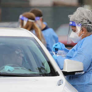 这是1月10日在美国洛杉矶县拍摄的一处新设立的免下车新冠病毒检测中心。