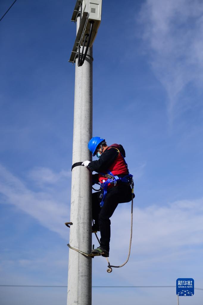 1月9日,在青海省海北藏族自治州门源回族自治县皇城蒙古族乡马营村,国家电网青海省电力公司门源县供电公司共产党员服务队队员李文科检查电路。