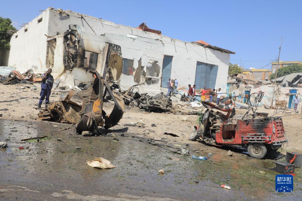 索马里警方12日说,首都摩加迪沙的国际机场附近当天正午发生一起自杀式汽车炸弹袭击,造成包括5名士兵在内至少10人死亡,另有9人受伤。新华社发(哈桑·巴希摄)