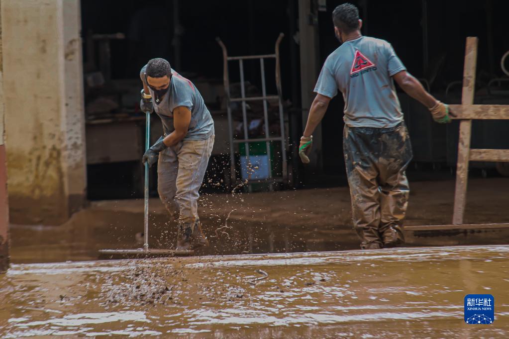 1月11日,人们在巴西米纳斯吉拉斯州萨巴拉清理街道上的淤泥。