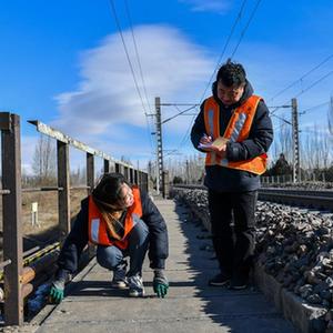 1月12日,中国铁路太原局集团有限公司大同工务段的桥隧工赵辰妍在大秦铁路御河桥上巡检。