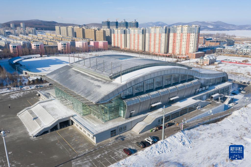 1月12日拍摄的七台河体育中心外景(无人机照片)。