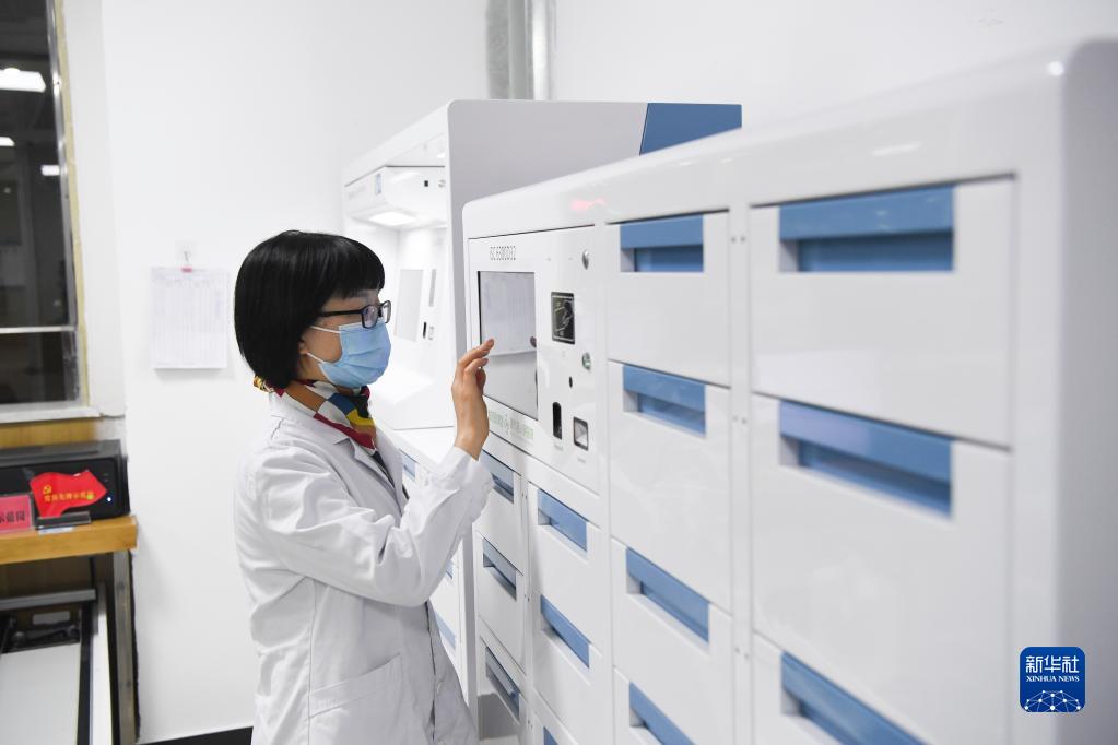 1月13日,重庆奉节县人民医院新院区药房工作人员为患者取药。