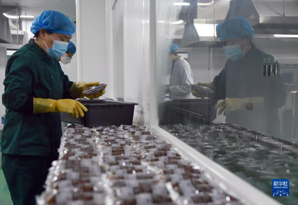 1月13日,禹州市中医院的工作人员整理包装好的中药煎剂。
