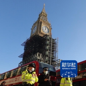 1月12日,警察佩戴口罩经过英国伦敦大本钟。