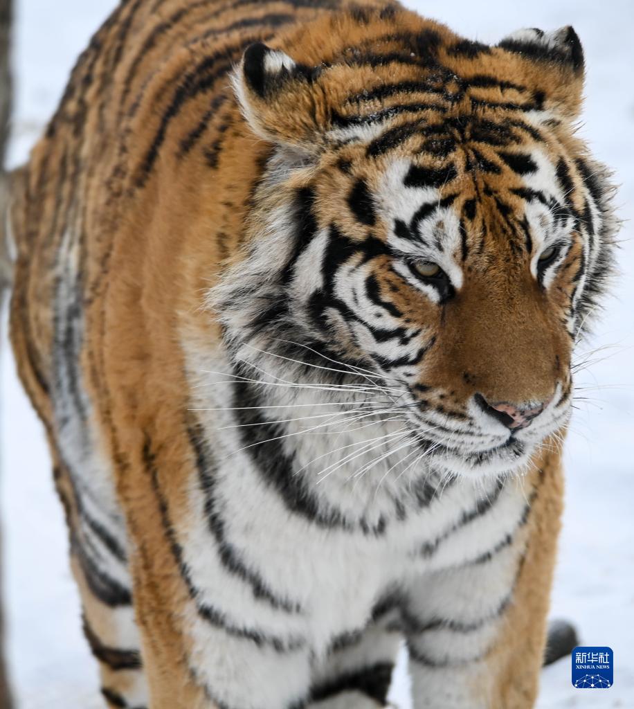 1月13日,在吉林省东北虎园内,一只东北虎在雪地上驻足。