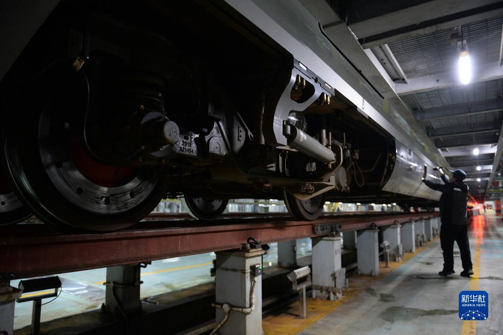 1月13日,广铁集团长沙车辆段职工检查列车。
