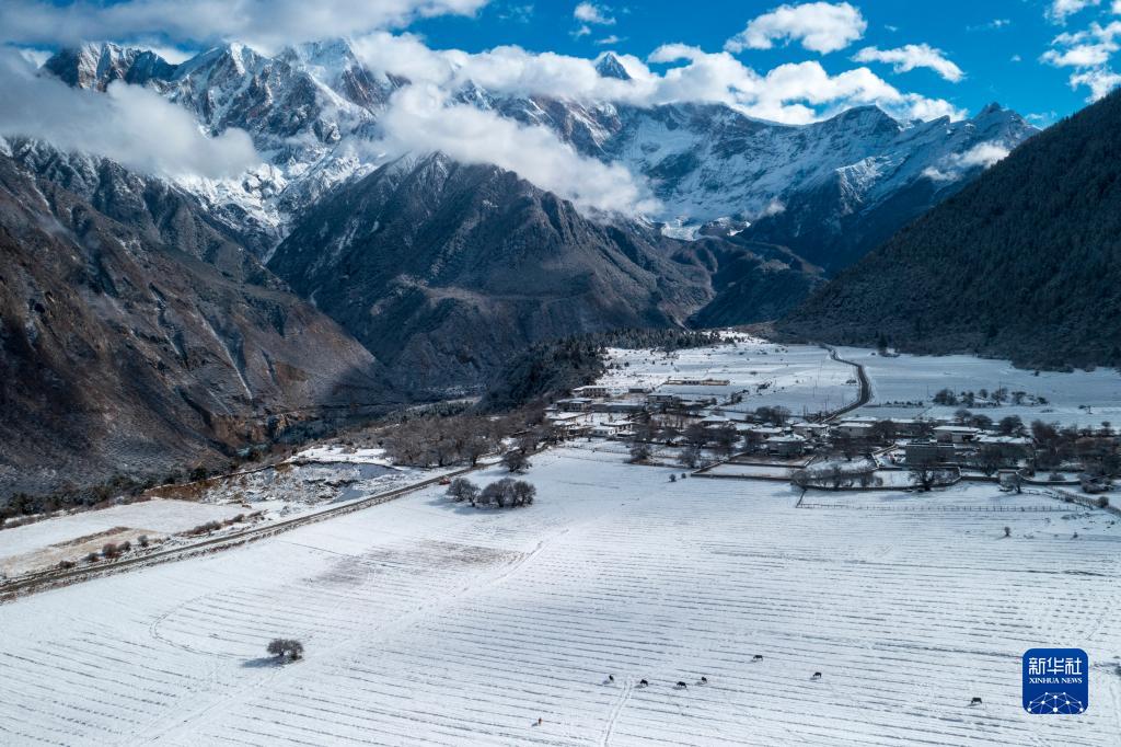 当日,西藏林芝市米林县派镇雅鲁藏布大峡谷附近普降瑞雪,银装素裹的雅鲁藏布江和南迦巴瓦峰显得格外壮美。