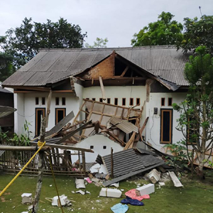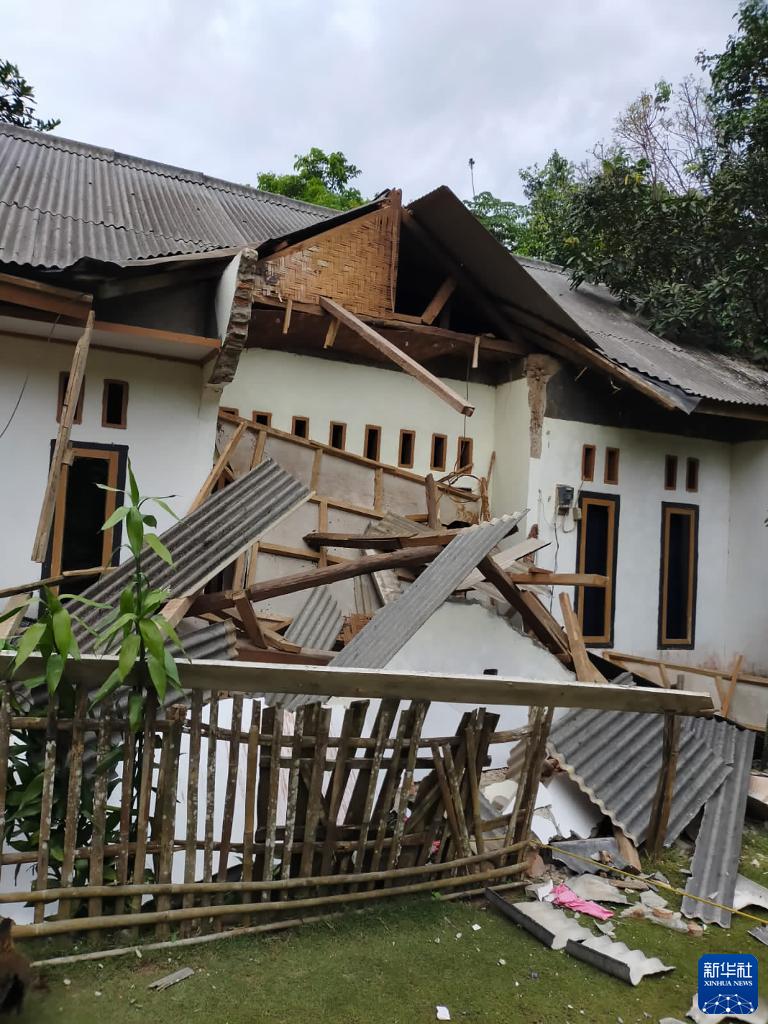 这是1月14日在印度尼西亚万丹省板底兰拍摄的在地震中受损的房屋。