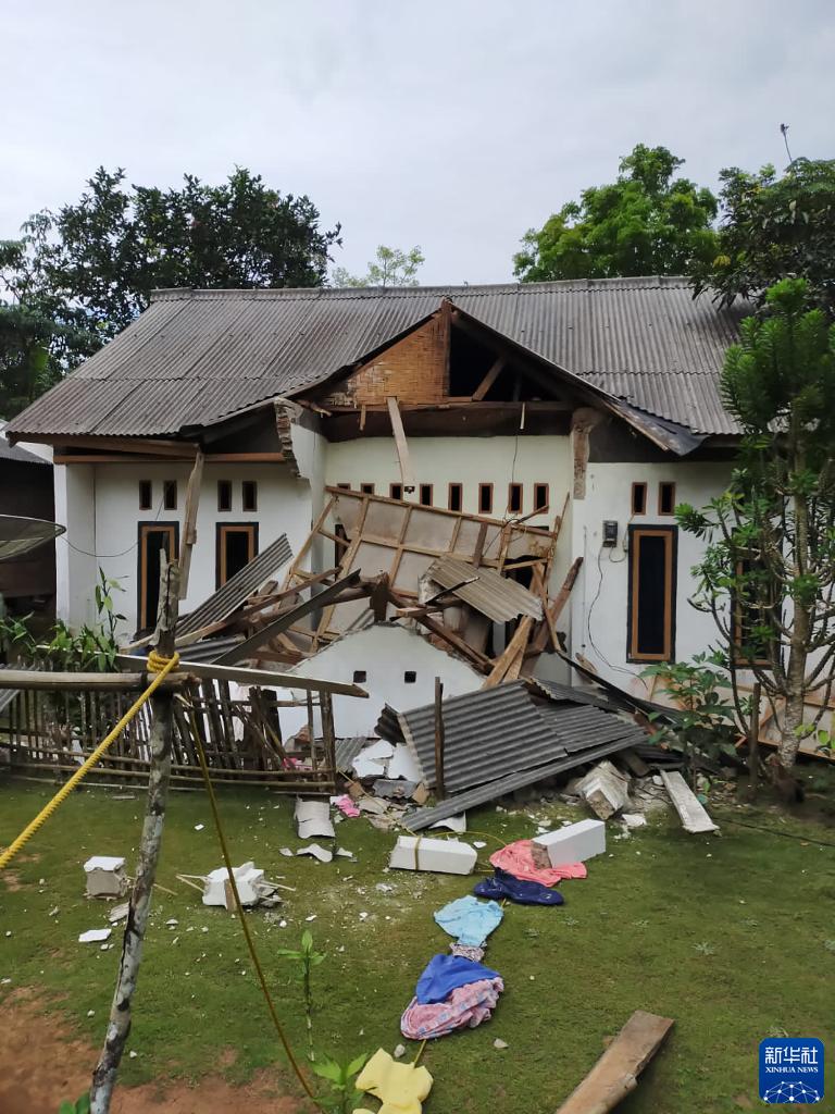 这是1月14日在印度尼西亚万丹省板底兰拍摄的在地震中受损的房屋。