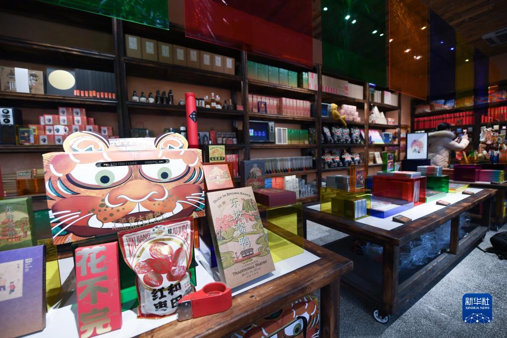 1月14日,瓶窑镇瓶窑老街上的自然造物民艺研究中心内展示的各类虎年文创年货。