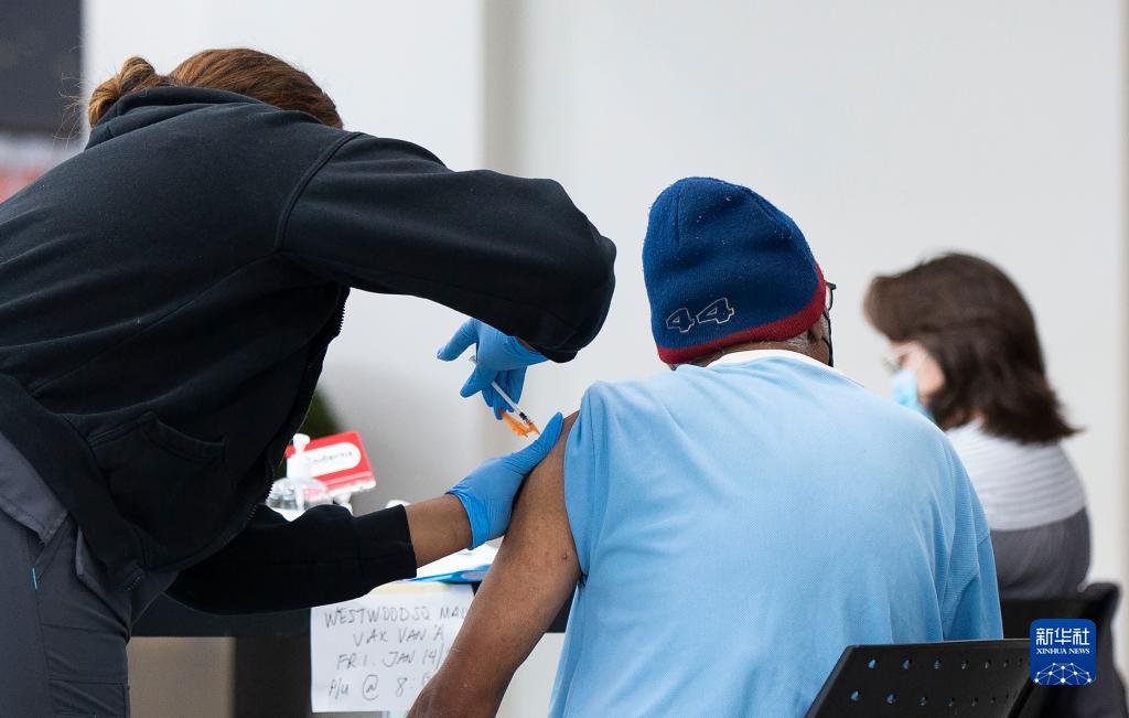 1月14日,一名男子在加拿大安大略省米西索加一处新冠疫苗接种点接种疫苗。
