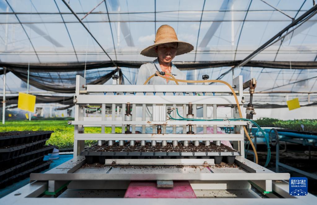 1月11日,工人在云南元谋现代种业科技园内操作播种机器。新华社记者 王冠森 摄