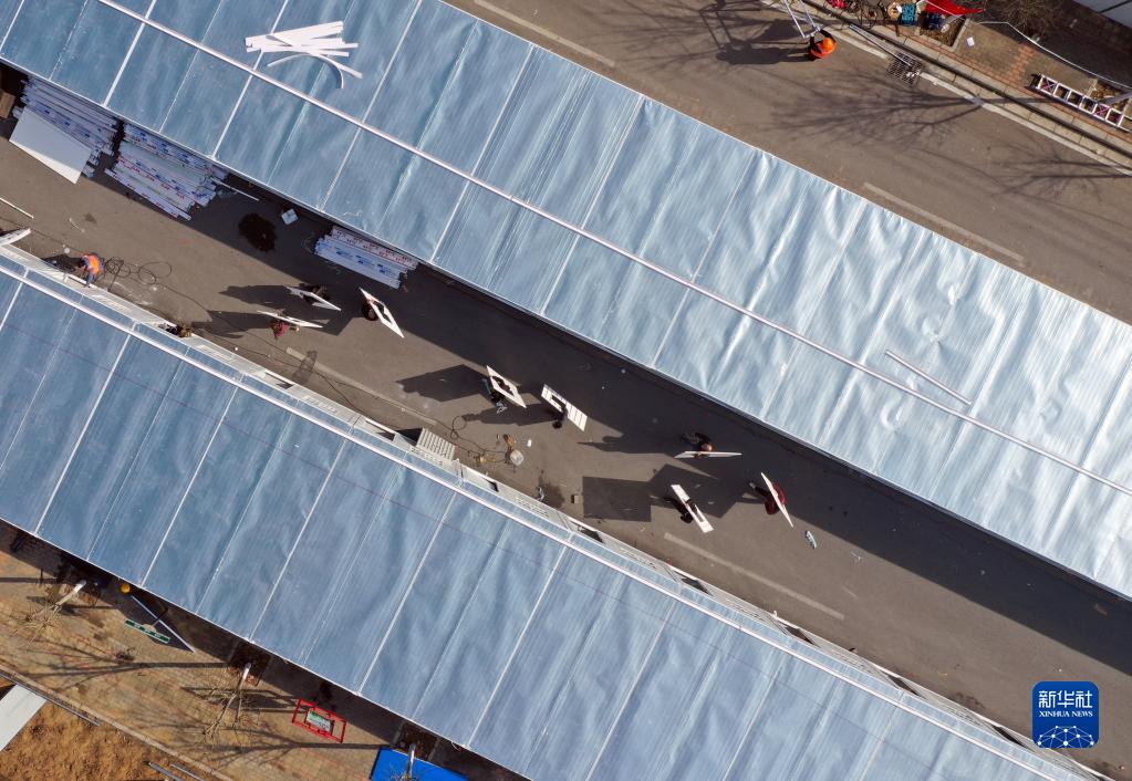 1月15日,中建七局的工人在搬运物料(无人机照片)。