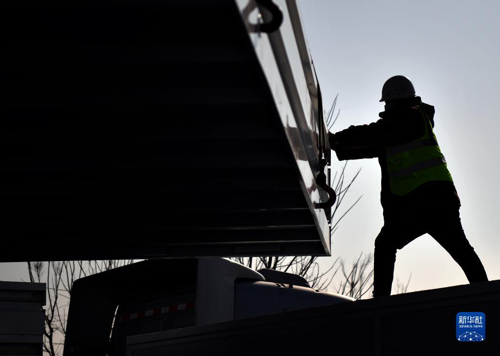 1月15日,中建七局的工人在进行吊装作业。