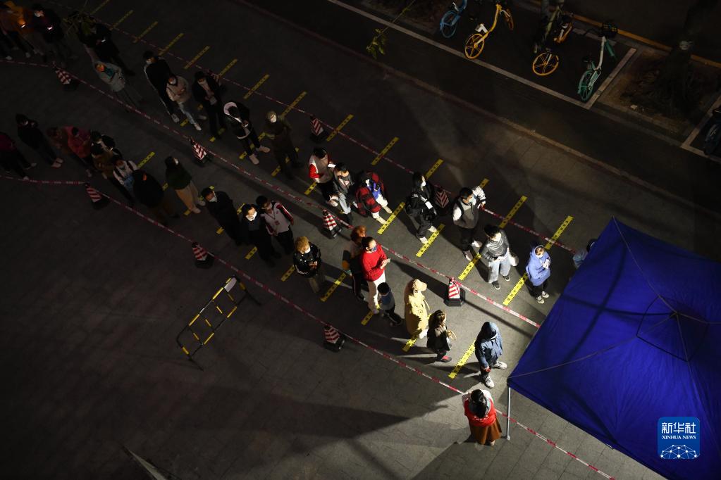 1月11日晚,深圳市民在核酸检测点排队等待检测。
