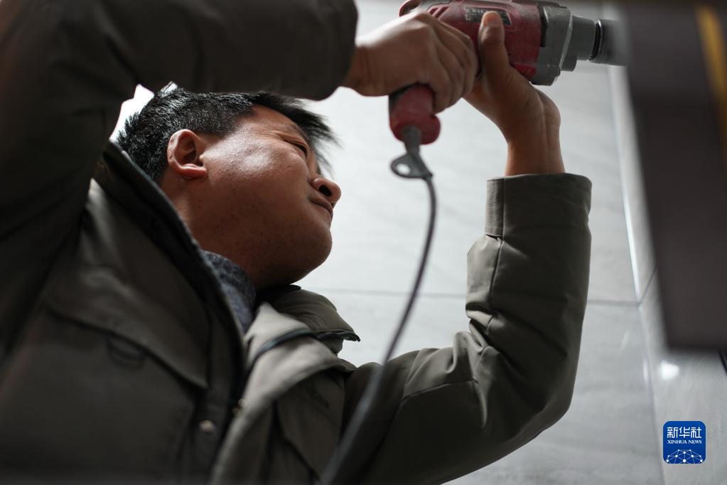 在江苏南通如皋,陈伟在一处小区装修房屋(1月5日摄)。