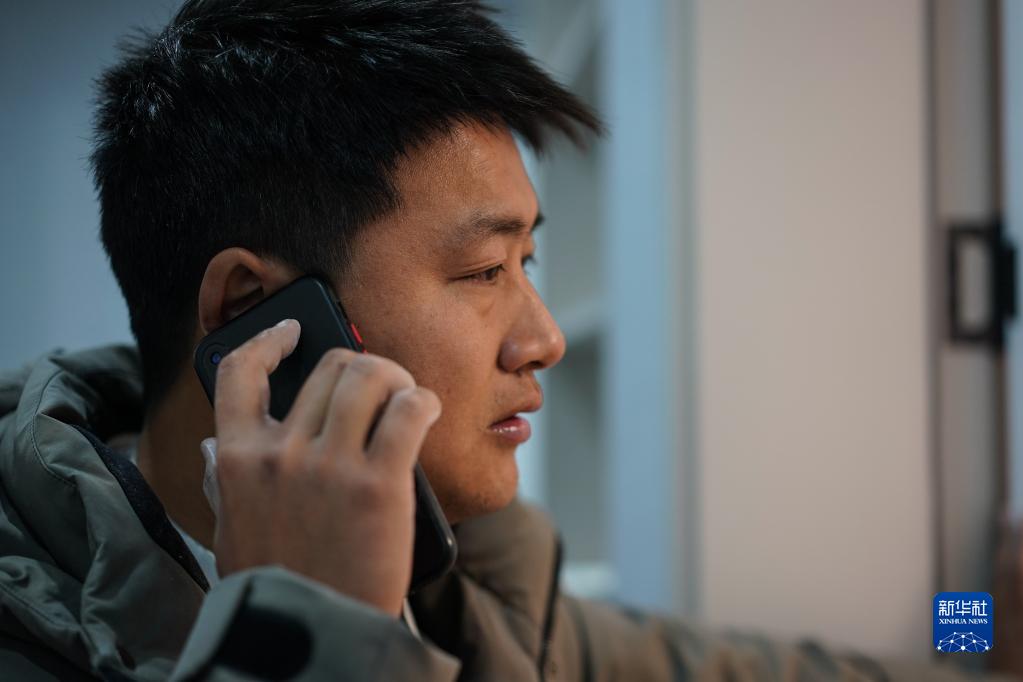 在江苏南通如皋,一天的装修工作快结束时,陈伟接到公司负责人有关第二天工作安排的电话(1月5日摄)。