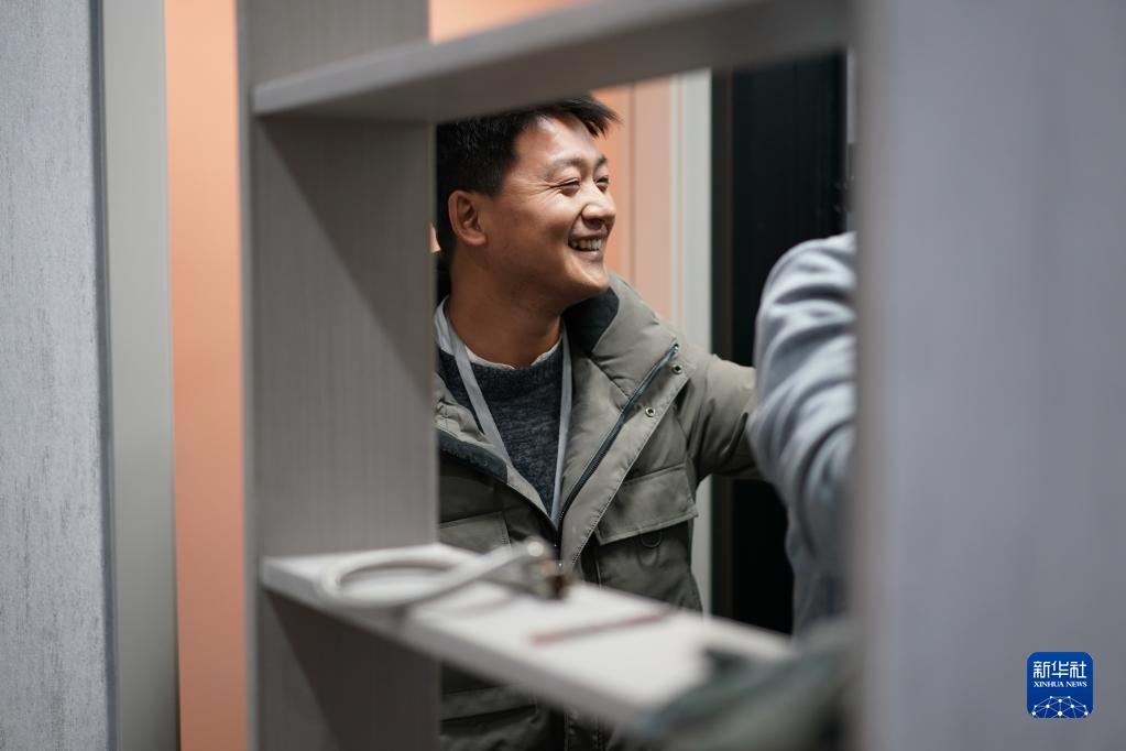 在江苏南通如皋,陈伟在装修房屋间隙和同事聊天(1月5日摄)。